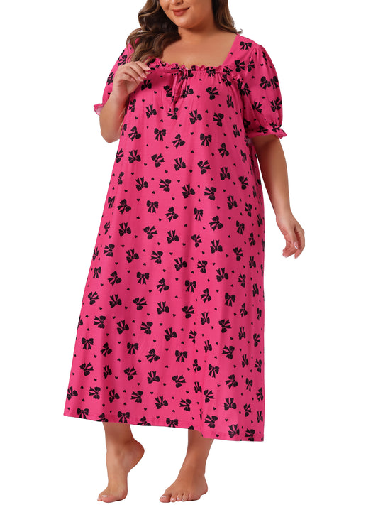 Women Plus Size Nightgowns Cute Cherry Sleepshirts Ruffle Nightdress Loungewear