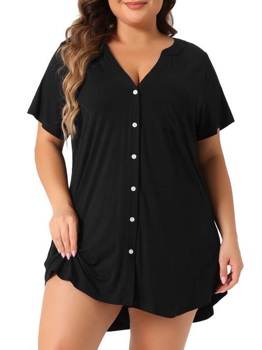 Women's Plus Size Short Sleeve Sleepshirt Pajamas Dress V Neck Button Down Nightgown