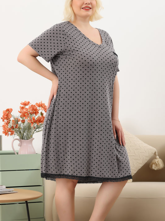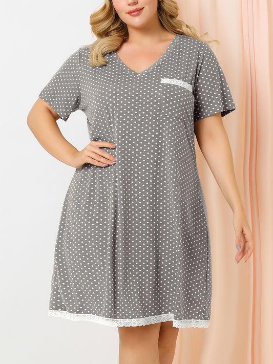 Women Plus Size Nightgowns Lace V Neck Short Sleeve Loungewear Sleepwear Dress