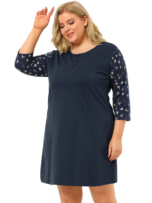 Women Plus Size Nightgown Floral 3/4 Sleeve Sleepwear Sleepshirt