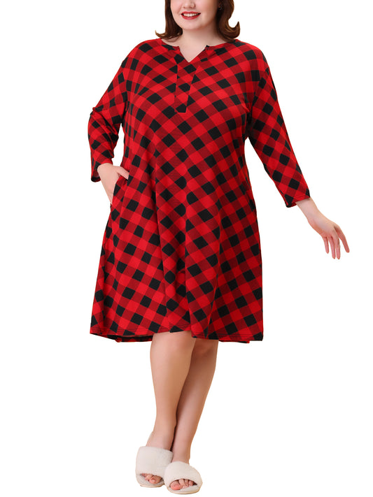 Women Plus Size Nightgown Plaid V Neck Lounge Sleep Dress Nightgowns