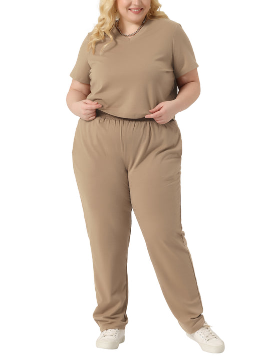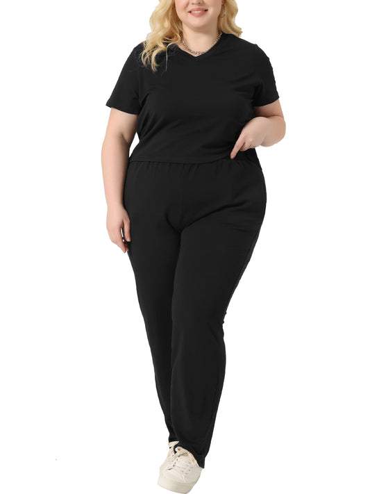 Women Plus Size 2 Piece Outfit Tracksuit Sets Short Sleeve Tops Long Pants Summer Sport Lounge Set