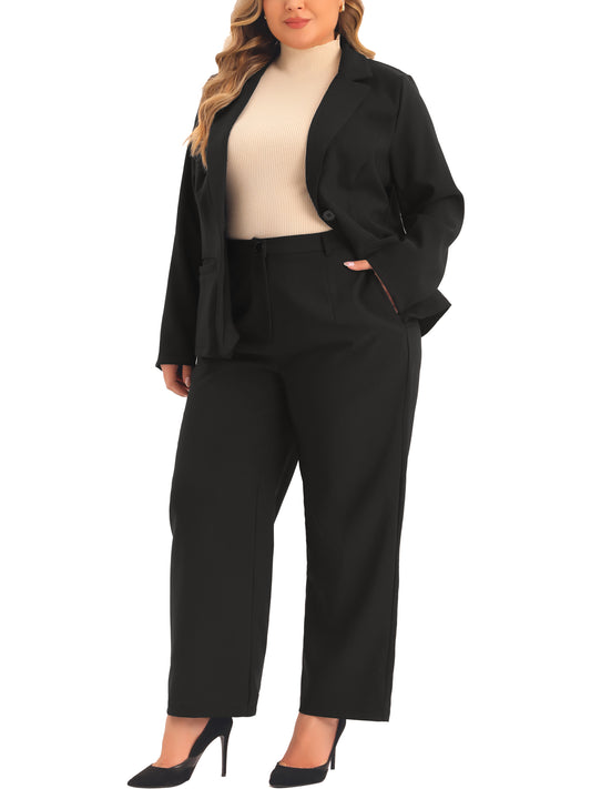 Women Plus Size Suit Two Piece Outfit Business Office Blazer Jacket and Pants Suit Set