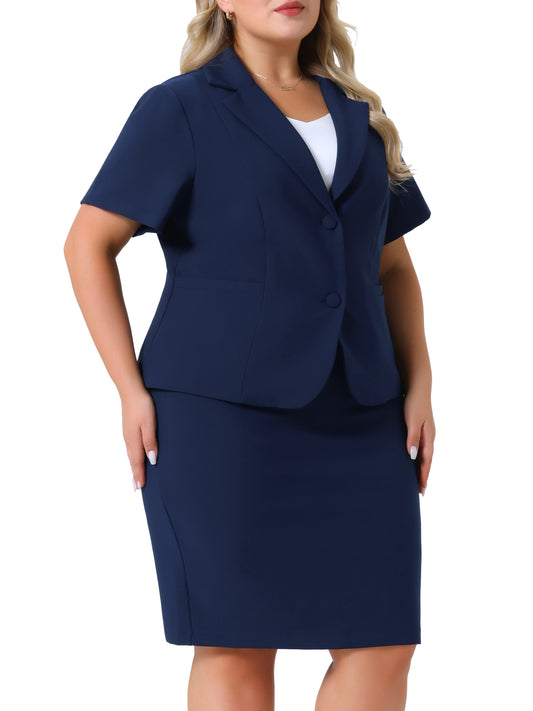 Women Plus Size Blazer Suits Notch Lapel Short Sleeve Office Pencil Skirt Business Skirt Set