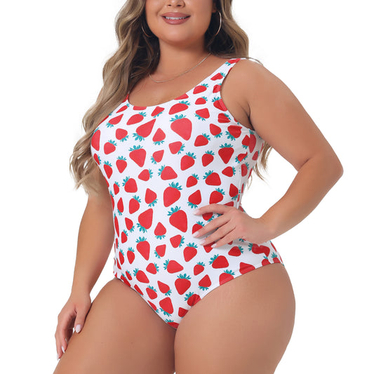 Women Plus Size Swimsuit Cute Strawberry Pattern Swimwear Bathing Suit