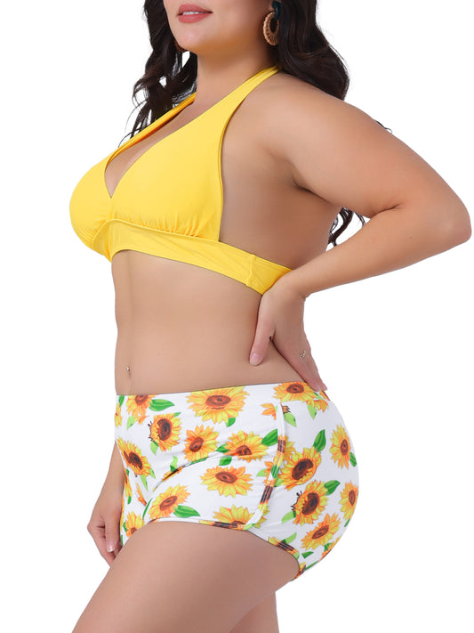 Women's Plus Size Sunflower Bikini 2 Piece Swimsuits High Waisted Halter Bathing Suit Sets