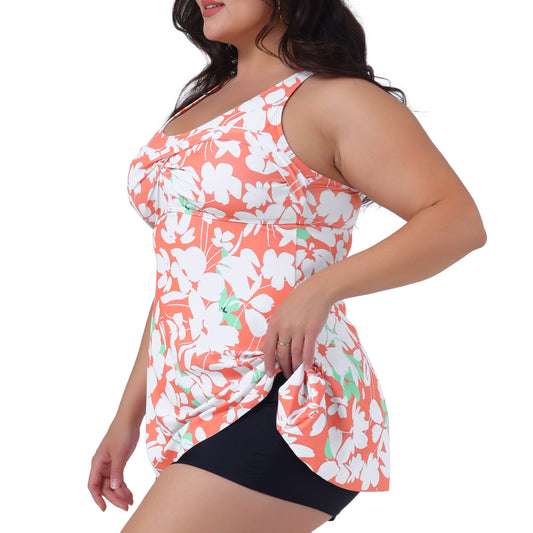 Women Plus Size Tankini Swimsuit 2 Piece V Neck Floral Flowy Tops with Shorts Bathing Suit
