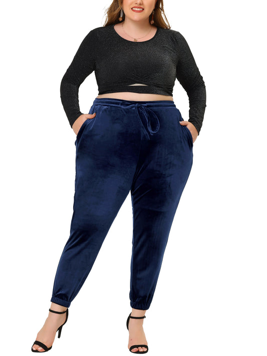 Women's Plus Size Velvet Pants Casual Elastic Lounge Sweatpants Jogger Long Pants