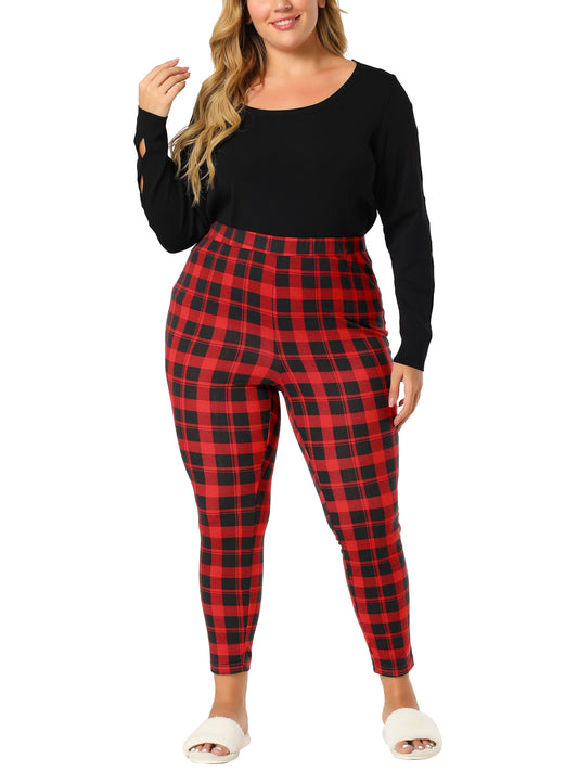 Women Plus Size Check Leggings Stretch Festive Glen Plaid Skinny Pant Legging Christmas