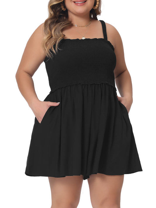 Women Plus Size Summer Sleeveless Rompers Square Collar Flowy Short Jumpsuit with Pockets
