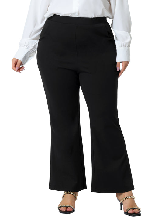 Women Plus Size Pants Bell Bottom Flare Leg Stretchy High Waist with Pockets Long Pants