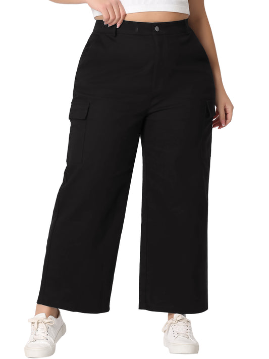 Women Plus Size Cargo Pants Elastic Waist with Pockets Workout Trousers