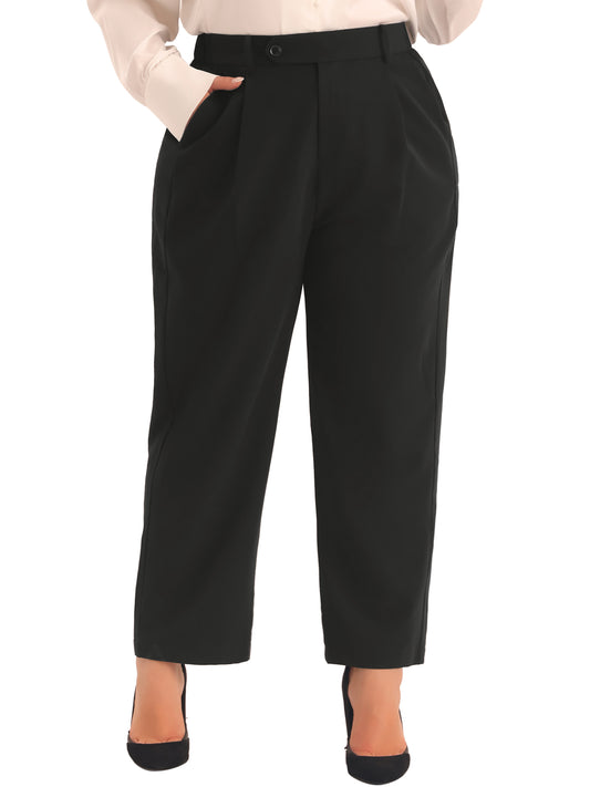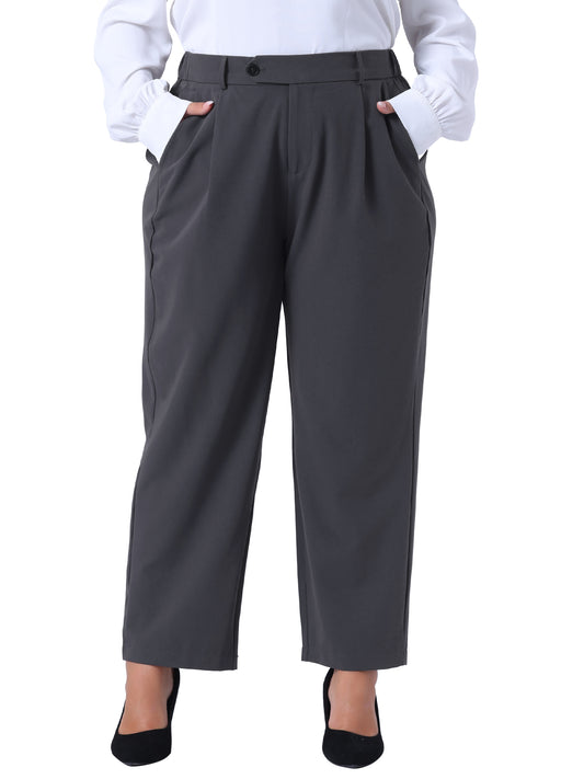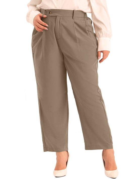 Women Plus Size Pants Elastic High Waisted Long Straight Business Casual Work Pants Trousers with Pockets