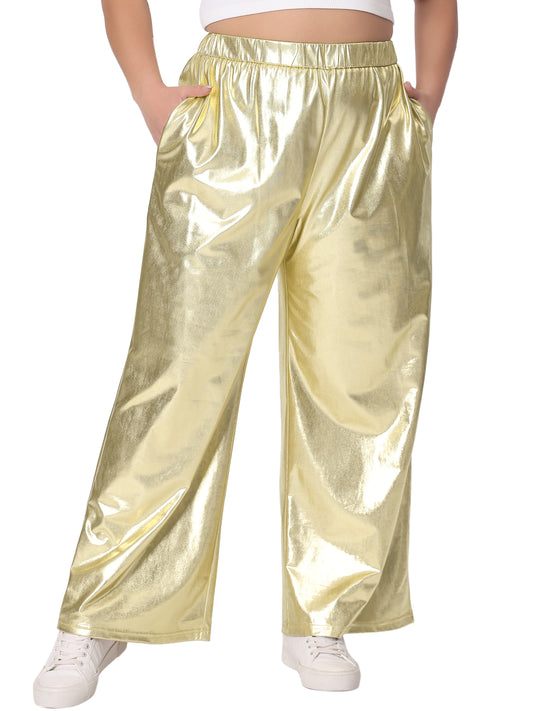 Women Plus Size Jogger Pants Metallic Shiny High Waist Stretchy Wear Holographic Trousers Sweatpant