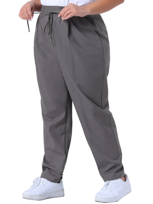 Women Plus Size Pants Straight Leg Drawstring Elastic Work Loose Trousers with Pockets