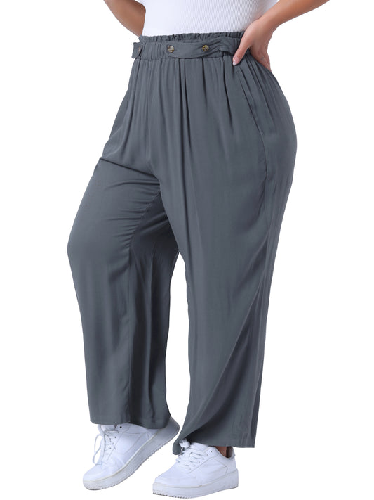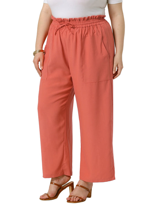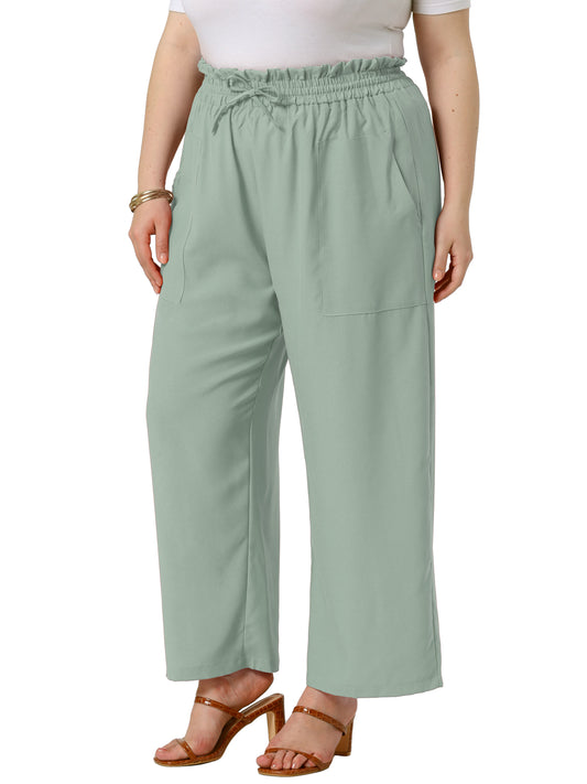 Women's Plus Size Baggy Wide Leg Elastic High Waist Palazzo Pants with Pockets Drawstring Summer Casual Trousers