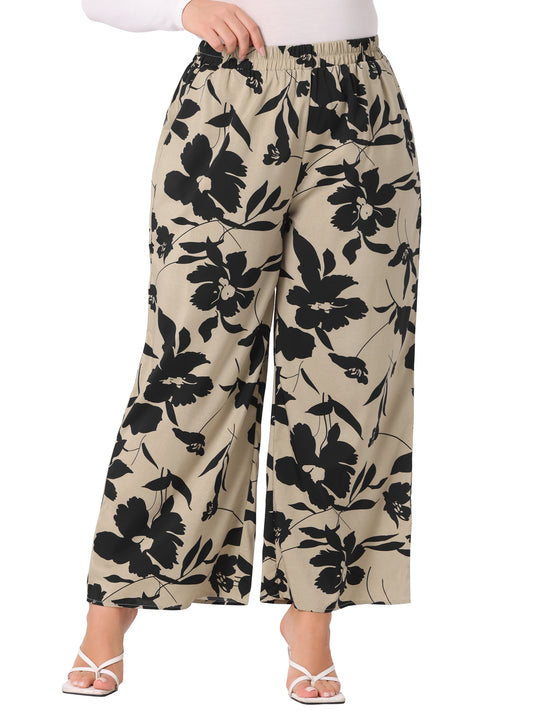 Women Plus Size Palazzo Pants Chiffon Casual Boho High Waist Wide Leg Pant with Pockets