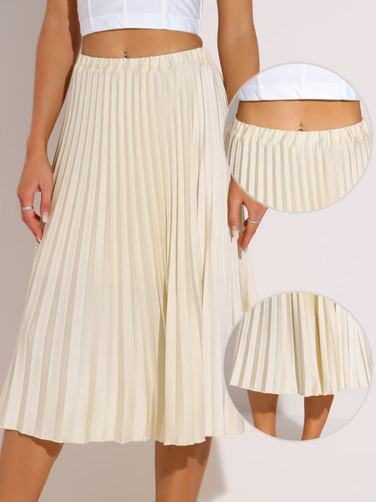 Women's Elastic Waist A-line Swing High Waist Pleated Skirt