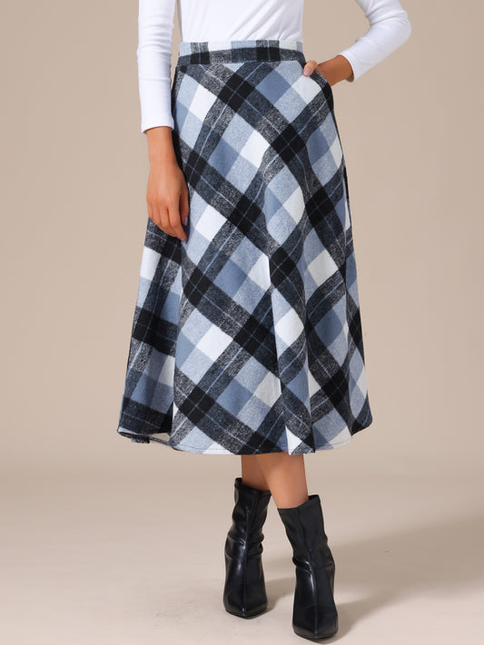 Women's Vintage Plaid High Waist A-Line Long Maxi Skirt with Pockets