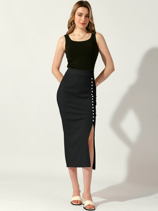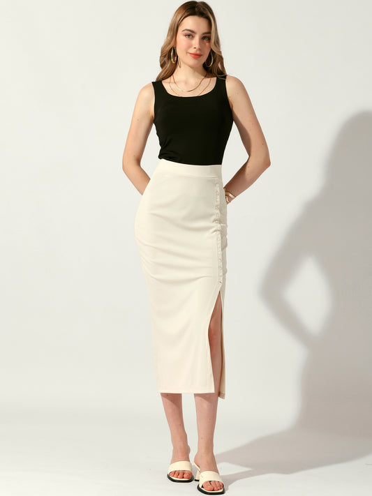 Women's Pencil Basic Skirt Midi Casual Side Split Slit Ribbed Knit Bodycon Skirts