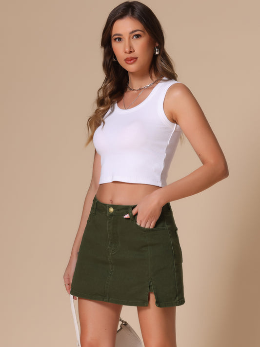 Women's Jean Skorts High Waisted A-Line Stretchy Side Slit Mini Denim Skirt with Shorts