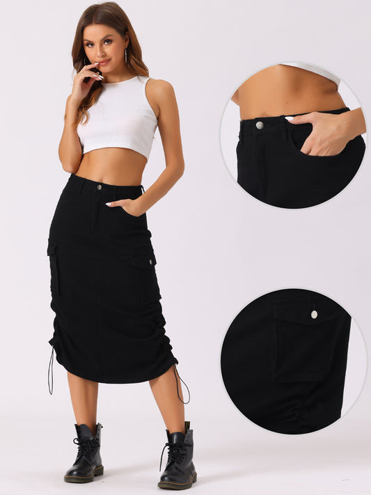 Women's Adjustable A-Line Midi Long Cargo Denim Skirt