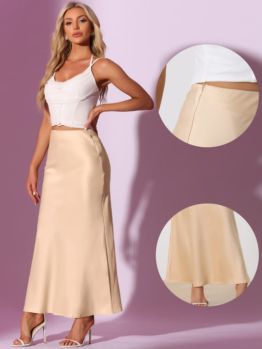 Women's Satin Maxi Skirts High Waist Elegant Long Fishtail Skirt