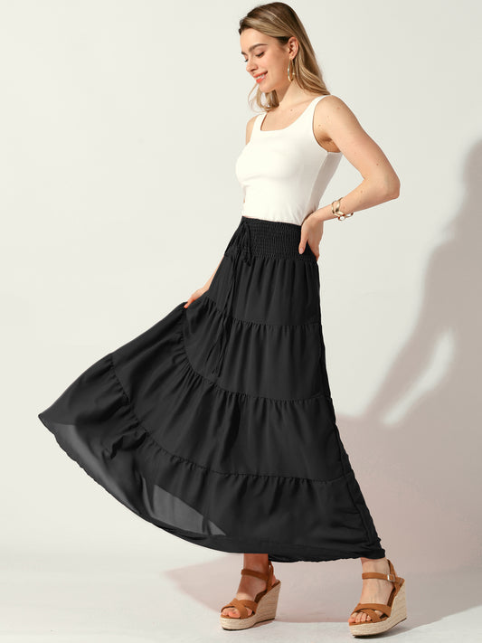 Women's Boho Skirts Maxi Summer Beach Elastic Waist Tiered Smocked Flowy A-Line Skirt