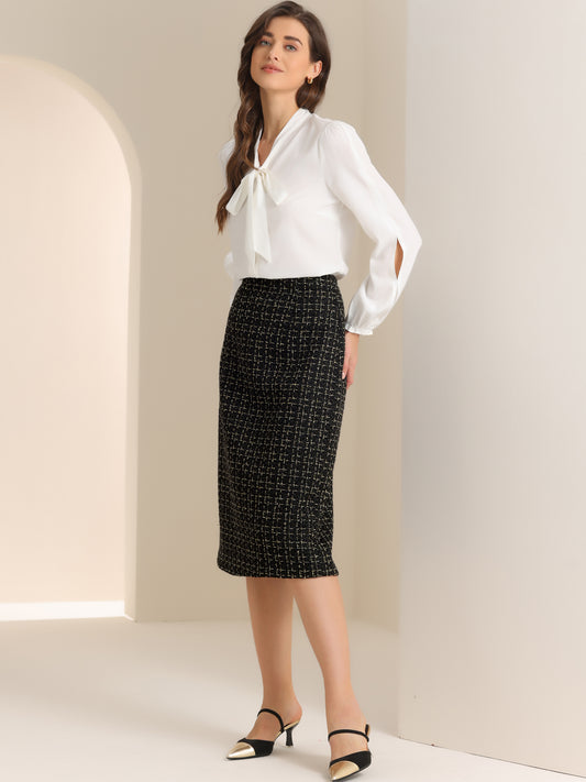 Women's Plaid Tweed High Waist Work Office Bodycon Pencil Skirt