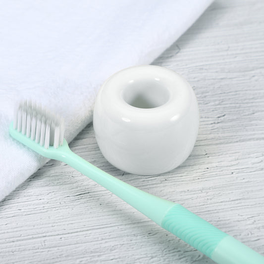 Round Mini Ceramic Toothbrush Holder for Bathroom, 1.65"x1.18" White