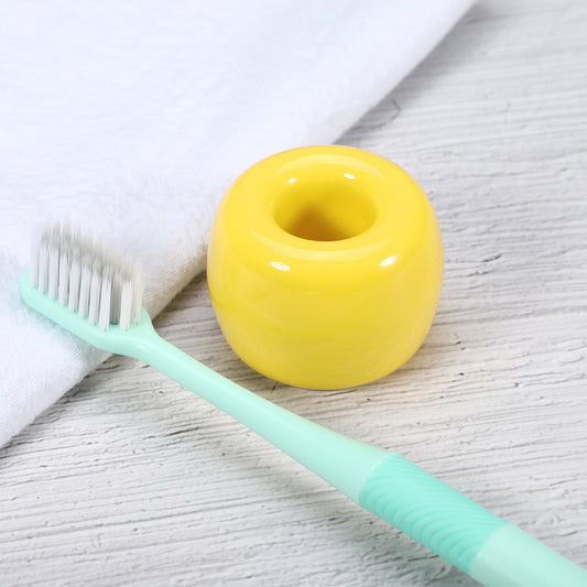 Round Mini Ceramic Toothbrush Holder for Bathroom, 1.65"x1.18" Yellow