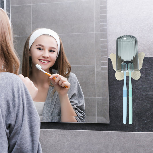 1 Set Butterfly Wall Mounted Toothbrush Holder with Cup for Bathroom, 4.33"x3.35" Beige