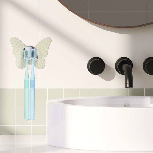 Butterfly Shaped Wall Mounted Toothbrush Holder for Bathrooms, 4.33"x3.35" Beige