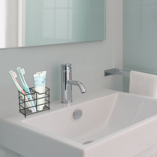 Wall Mounted Toothbrush Toothpaste Holders for Bathroom, 5.51"x2.87"x3.03" Black Gold Tone