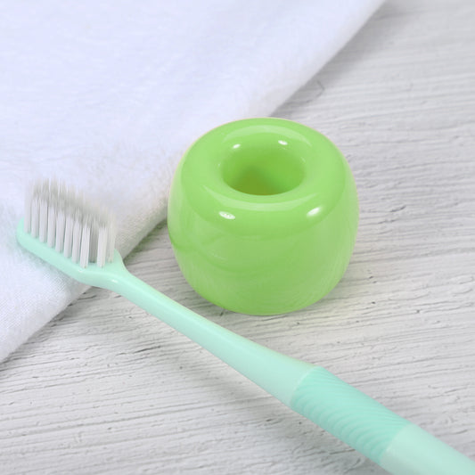 Round Mini Ceramic Toothbrush Holder for Bathroom, 1.65"x1.18" Light Green