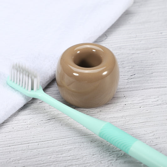 Round Mini Ceramic Toothbrush Holder for Bathroom, 1.65"x1.18" Brown