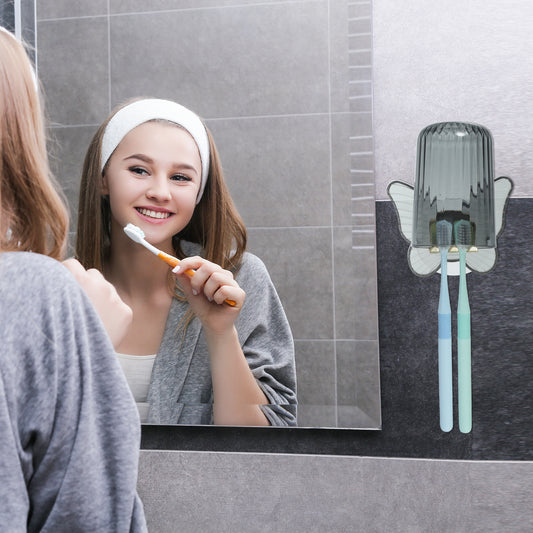 1 Set Butterfly Wall Mounted Toothbrush Holder with Cup for Bathroom, 4.33"x3.35" Gray
