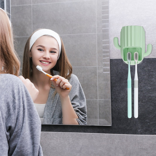 Cactus Wall Mounted Toothbrush Holder Organizers for Bathrooms, 2.45"x2.45"x3.39" Green