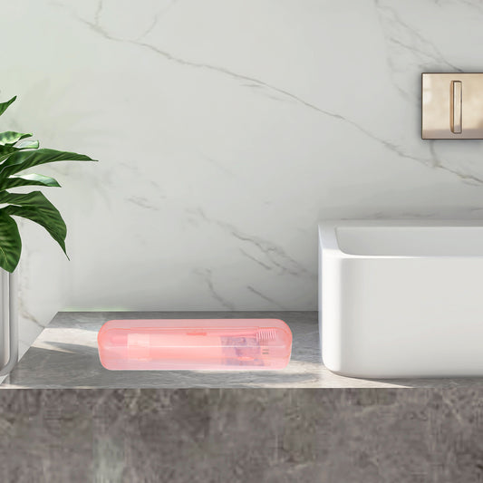 Plastic Lightweight Traveling Toothbrush Holders Case, 2.17"x1.38"x8.07" Pink