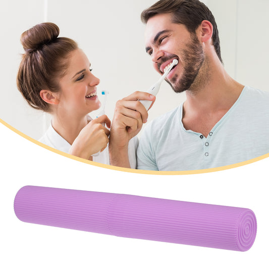 1 Pc Vertical Stripe Plastic Toothbrush Case for Travel 7.87"x1.18" Purple