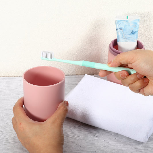 1 Pc Portable Toothbrush Cases with Cups for Travel Camping, 8.07"x2.20"x2.20" Pink