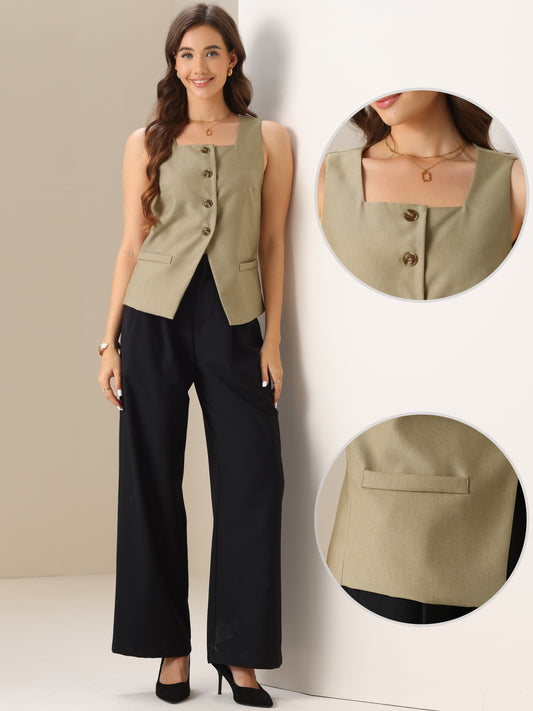 Women's Button Down Business Sleeveless Blazer Suit Vest