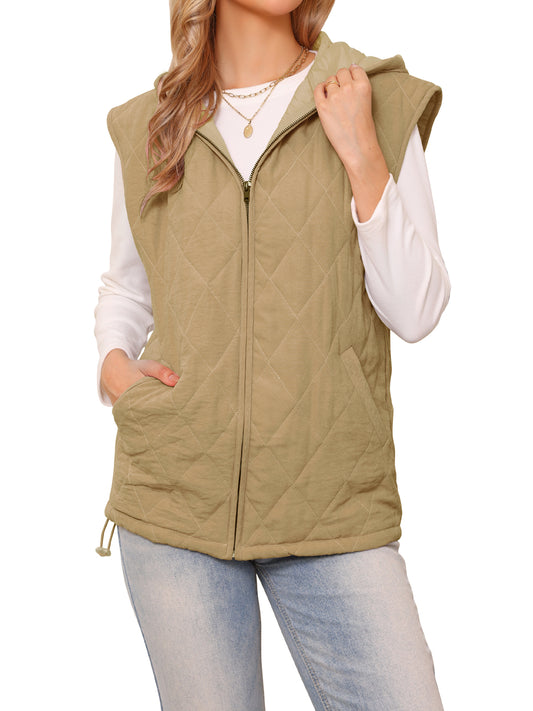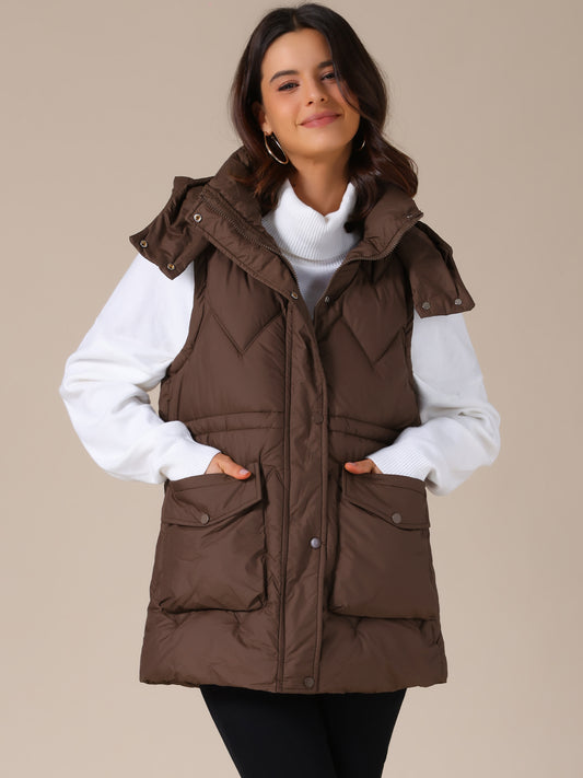 Women's Oversized Sleeveless Winter Gilet Quilted Zip Hoodie Puffer Vest