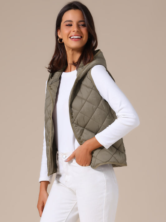 Women's Lightweight Hooded Sleeveless Button Down Puffer Vest