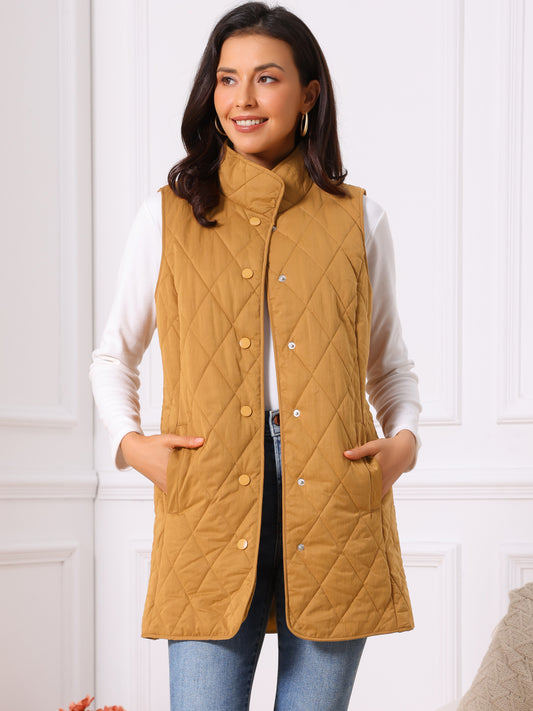Women's Winter Long Stand Collar Sleeveless Puffy Lightweight Gilet Quilted Puffer Vest