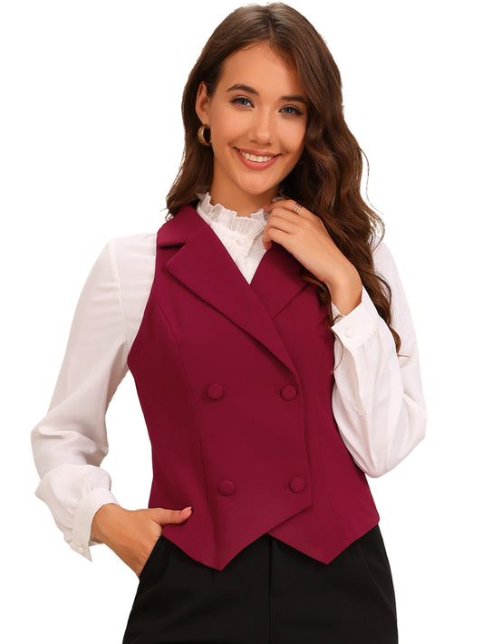 Women's Double Breasted V Neck Sleeveless Suit Vest