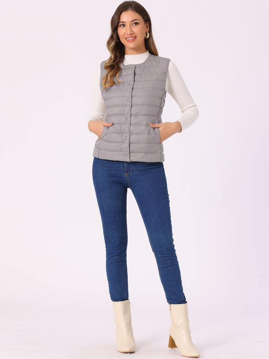 Women's Puffer Vest Sleeveless Lightweight Button Up Quilted Round Neck Outwear