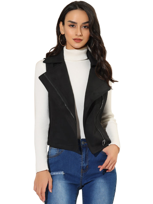 Women's Faux Suede Vest Casual Sleeveless Biker Jacket
