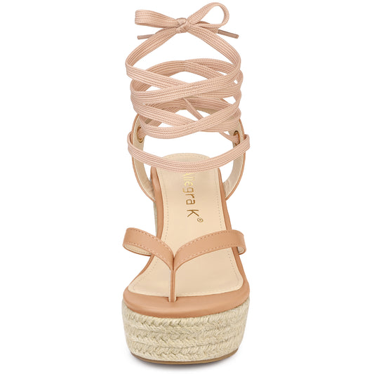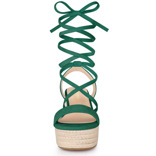 Women's Lace Up Wedge Heel Platform Slingback Strappy Sandals