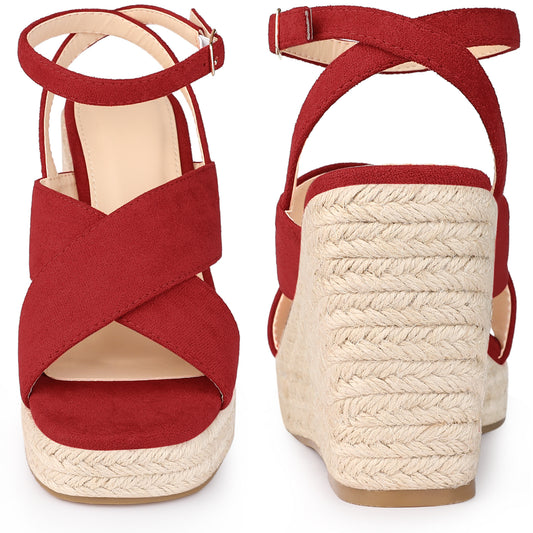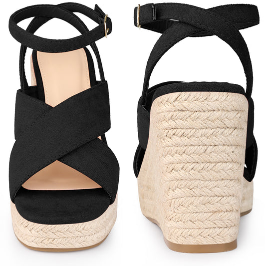 Women Platform Slingback Cross Straps Espadrilles Wedge Sandals